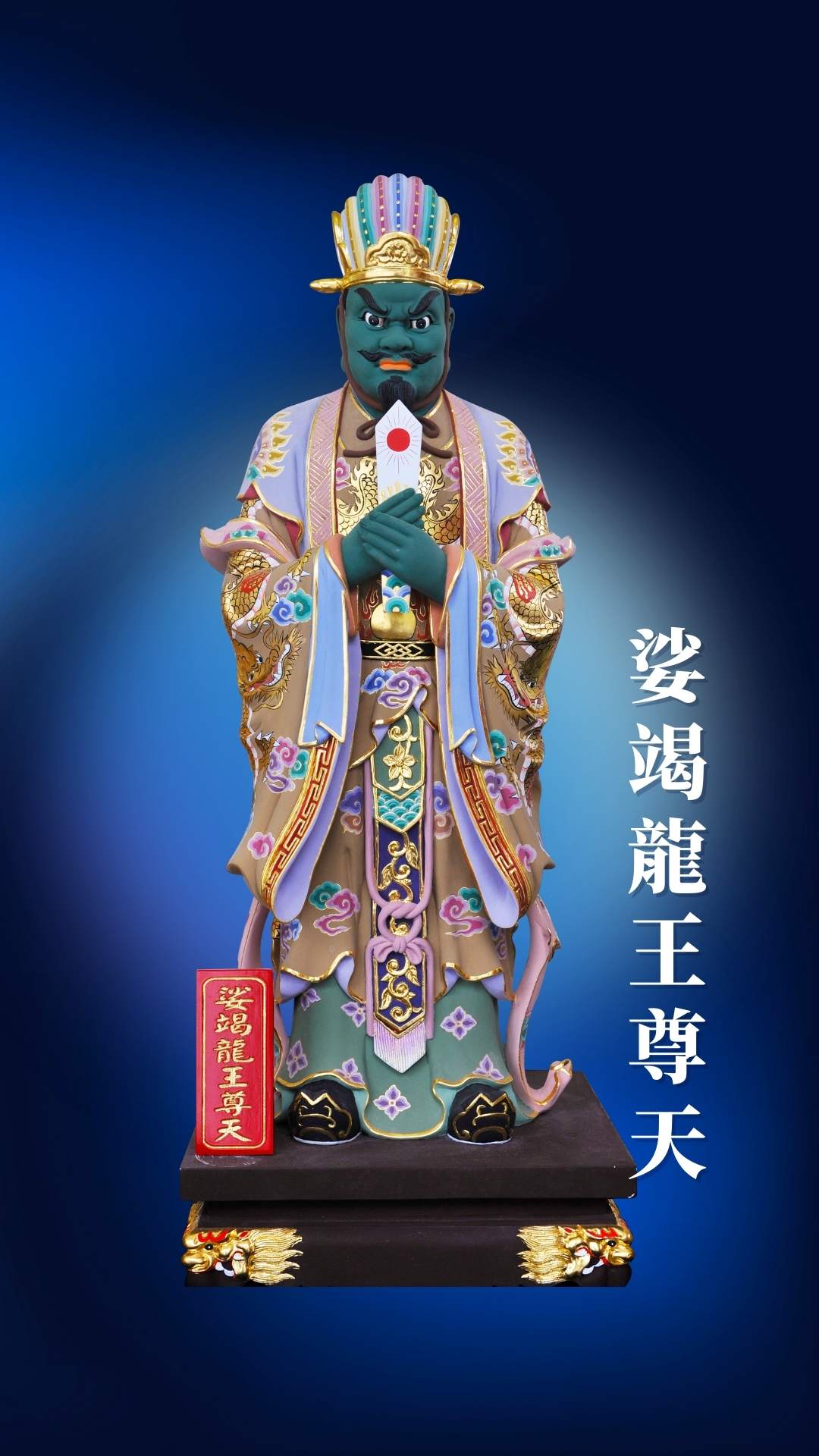 娑竭羅龍王的形象常見為頭現龍形,身著帝王服。因此又被視為是庇佑水利工程、造船業守護神。