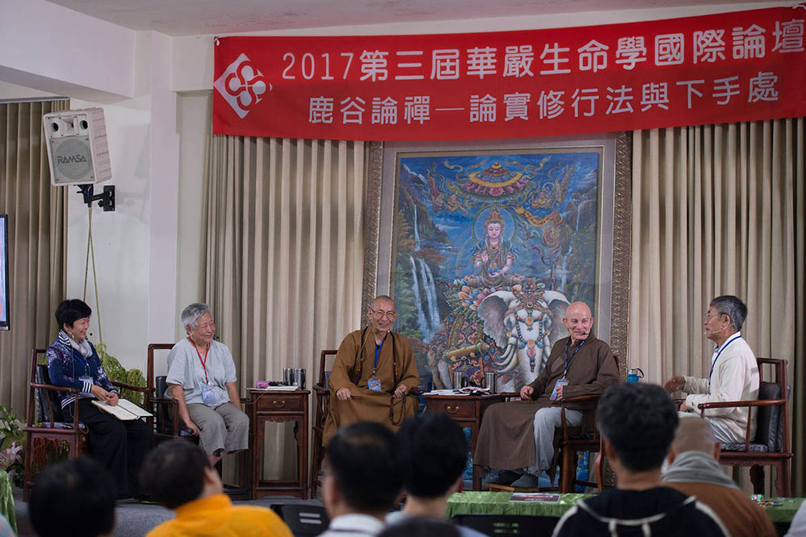 在會議的過程中,海雲和上先是還以「禪」的原貌,特別介紹「禪」的定義,並分享生命迴路和識性迴路的脈絡與系統,進而傾囊相授華嚴禪觀的實修方式及特色。東北老師則從「空」的立場講解本體界,引用《圓覺經》作、任、止、滅四種禪病,提醒大眾「作」、「任」、「滅」都是屬於有為法、並引用《楞嚴經》五蘊的觀念,說明如何下手方便及修行次第。