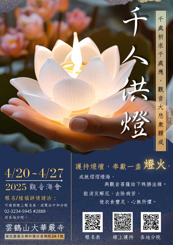2025年觀音海會千人供燈活動將集結千人的心願,共同點燃佛前的燈火。